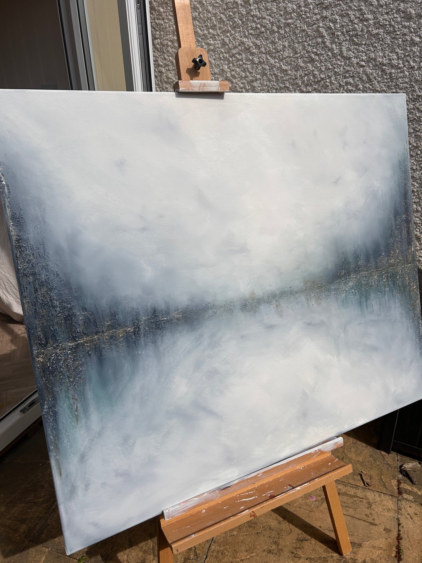Another of my more classically abstract pieces, depicting stillness and depth, almost a foggy landscape with gold accents, suspended but with a sense of calm.